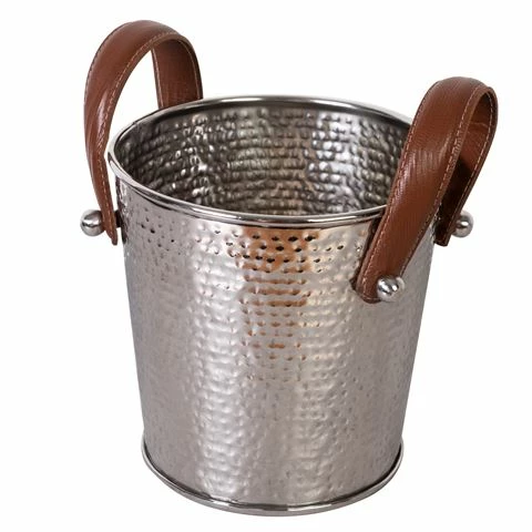 Keep your drinks cool and stylish with this Hammered Bucket with Leather Handles. Crafted from stainless steel with a bolt hammered design, the bucket is finished with brown leather effect handles. It’s an art form.