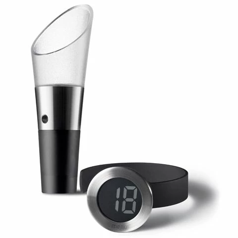 With this Vignon Wine Set you’ll have everything you need as a discerning wine connoisseur. The brilliant Menu Decanting Pourer fixes onto your wine bottle spout and oxygenates the wine as you pour, while Menu’s Wine Thermometer is like a little wristwatch for your wine – just put it on your wine bottle, wait a few minutes, and the digital readout on the front of the Thermometer will let you know your wine’s temperature.