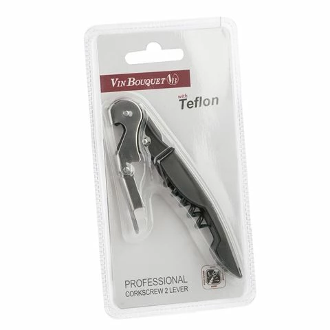 This Professional Two Lever Corkscrew uses both a screw and anchoring lever system to assist in removing corks from wine bottles, with less effort that a traditional corkscrew.