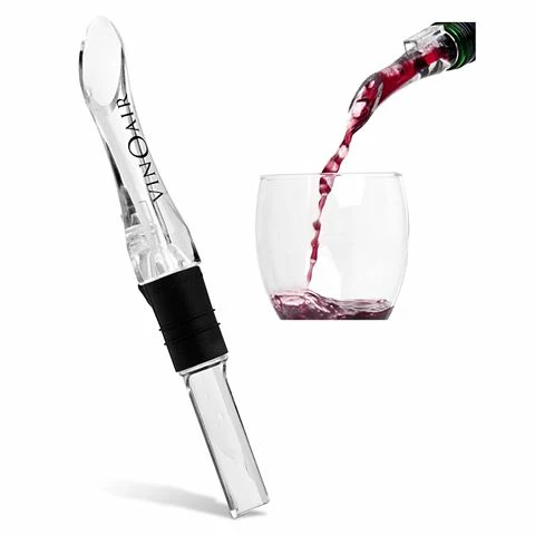 Aerated wine flows easily though the elegant spout of this Wine Aerator. Simply insert it into your wine bottle and your wine will flow through the little chamber inside to draw in more air.