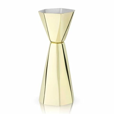 Intricate angles and an outer coat of gold combine to stunning effect in this barware staple, elevating durable stainless steel to instant classic status. The distinctive Viski faceted double jigger was designed in-house, so you won’t find it anywhere else. Gold plated. Proprietary, in-house design.