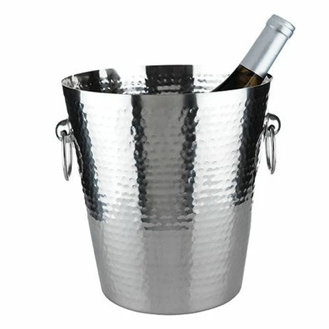 In the Forge Hammered Metal Ice Bucket, classically sculpted stainless steel is broken up by powerful blows for a hammered finish, resulting in sleek lines rent just enough to capture the light necessary for showcasing your wine.
